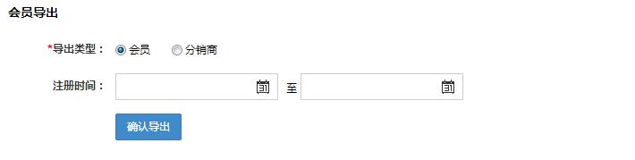 会员导出:可以根据会员或者分销商的一个注册时间来进行一个范围导出。不选择时间就导出全部