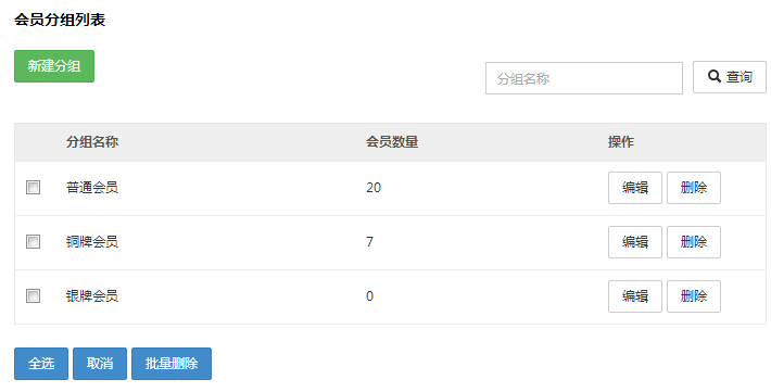 会员分组:把会员进行归纳,根据不同会员归纳成不同分组,就可以很明确的找到其中分组的会员了。