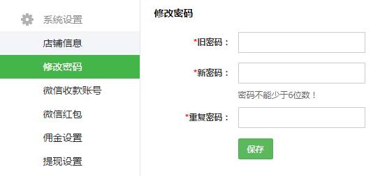 修改密码:如果需要修改密码,用户可进行密码修改,密码不能少于6位。